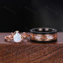 Vintage White Opal Couples Ring Set Rose Gold Twig Leaf Ring His and Hers Wedding Band Mens Opal Ring October Birthstone Anniversary Rings
