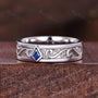 Wave Leaf Blue Sapphire Wedding Band Unique Kite cut Wedding Band Mens 5mm Ring His Engagement Ring Band September Ring Gift For Husband